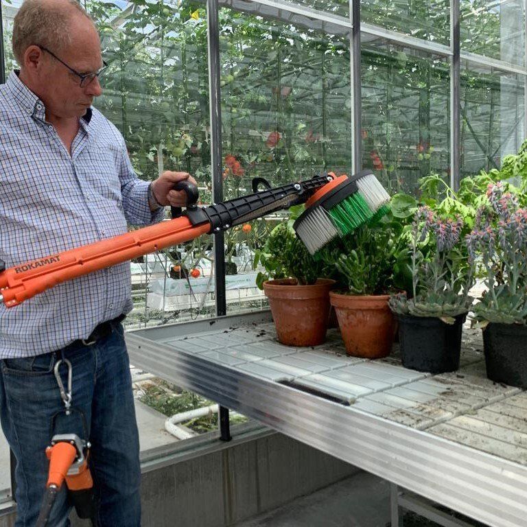 Dankzij het compacte, handige formaat en de telescopische handgreep is het reinigingen van verticale wanden, kweektafels en moeilijk bereikbare hoekjes nog nooit zo eenvoudig geweest!